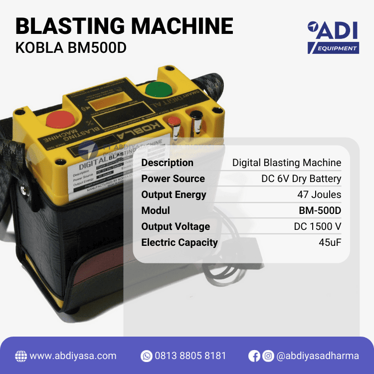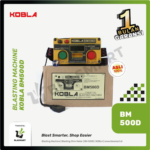 The KOBLA BM500D is an electric blasting machine capable of initiating a load of up to 500 ohms, which correlates to the maximum number of detonators it can fire in a single charge.