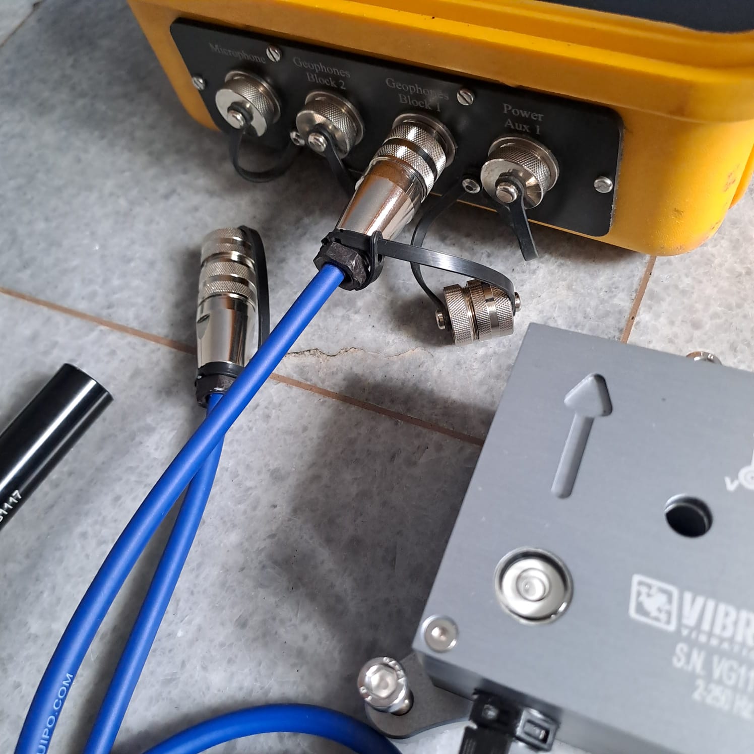 - Two 3-axis block of geophones for ground vibration monitoring